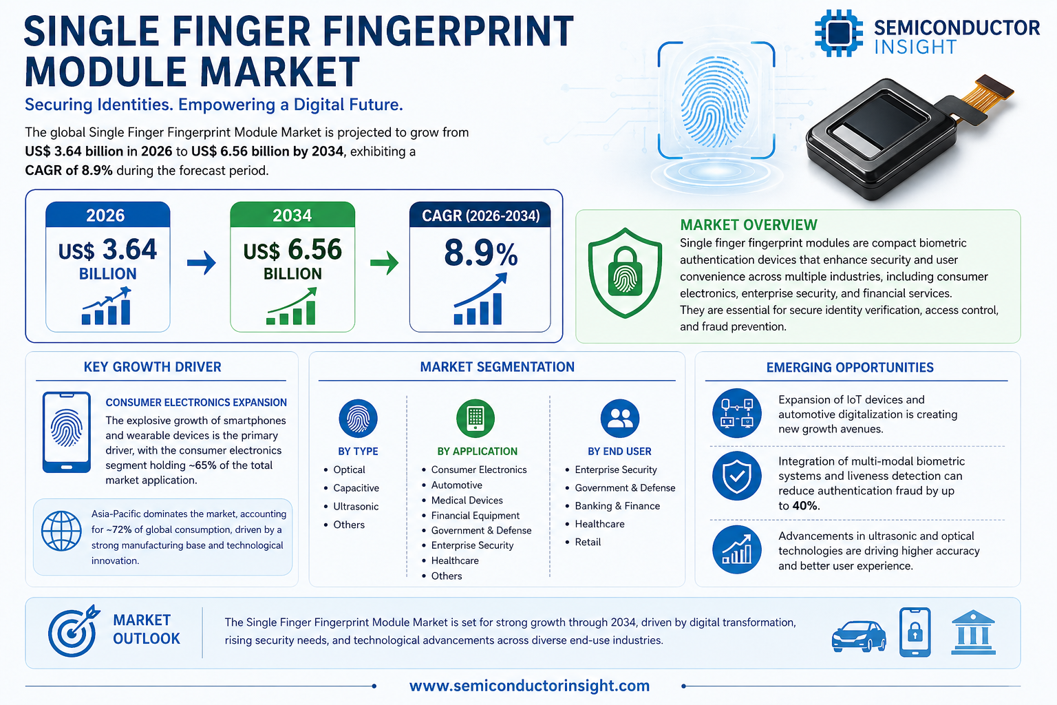 Single-Finger Fingerprint Module Market CAGR 8.9% 2034